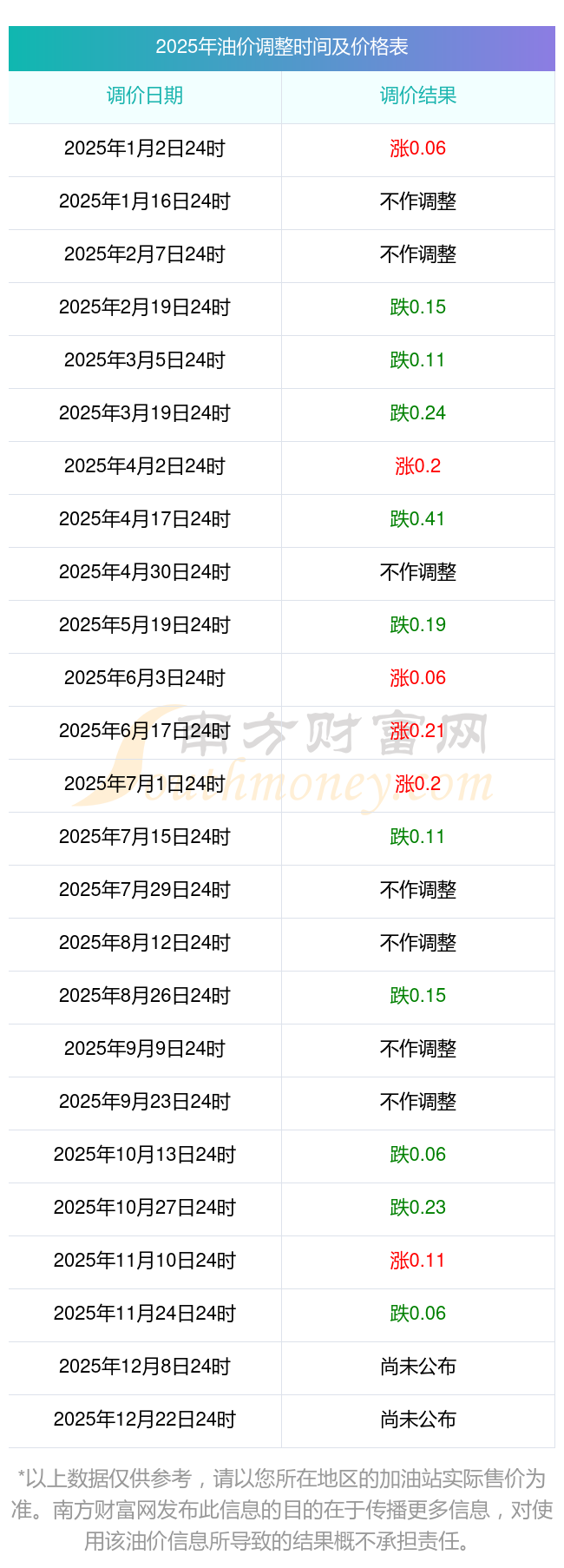 2025年汽油價格調(diào)價時間表(南安)