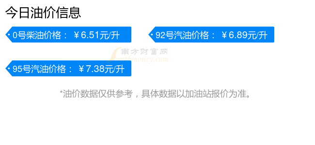 以上油價信息是當前市場上最新油價信息,油價數據僅供參考,實際在售油價可能有小幅偏差,請以您所在地區(qū)的加油站實際售價為準。