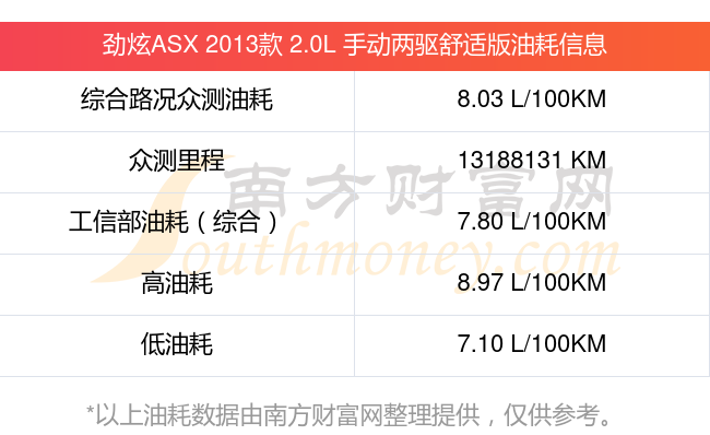 以上油耗數(shù)據(jù)由南方財(cái)富網(wǎng)整理提供,僅供參考。
