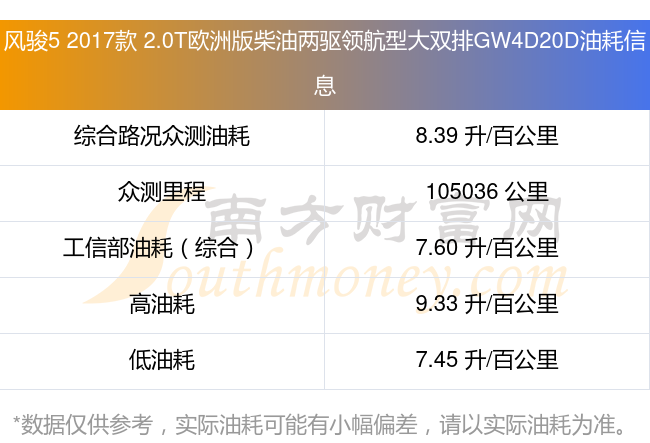 以上油耗數(shù)據(jù)由南方財(cái)富網(wǎng)整理提供,僅供參考。