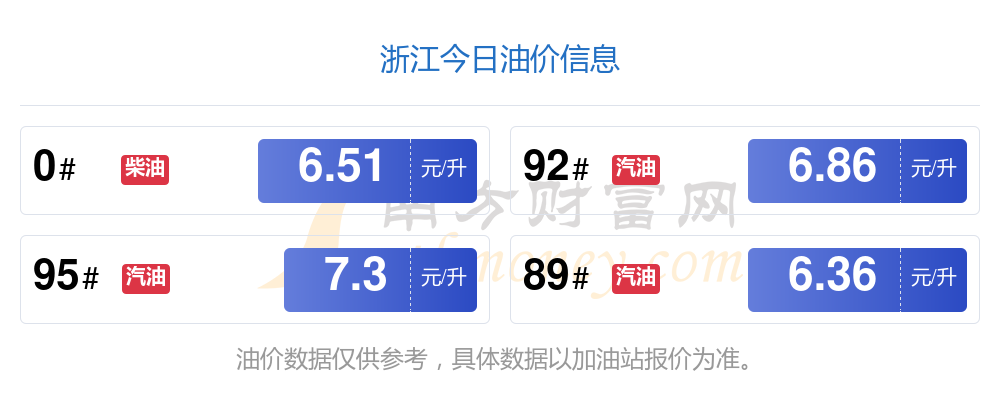 油價調(diào)整最新消息:浙江汽油、柴油11月29日每升的價格是多少?具體為:92號汽油為6.86元;95號汽油為7.3元;89號汽油為6.36元,下跌了0.05;0號柴油為6.51元,本輪調(diào)整時間為11月25日。下一輪油價調(diào)整時間12月8日24時。