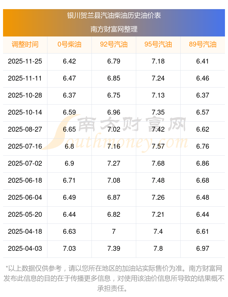 2025年銀川賀蘭縣油價調(diào)整時間表