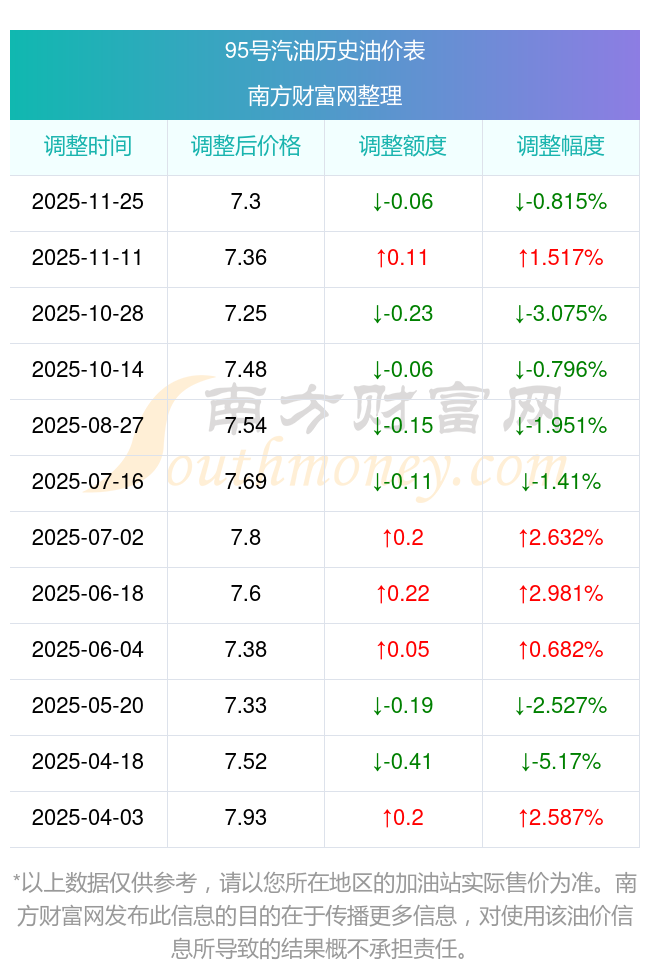江蘇2025年汽油價(jià)格調(diào)整時(shí)間表