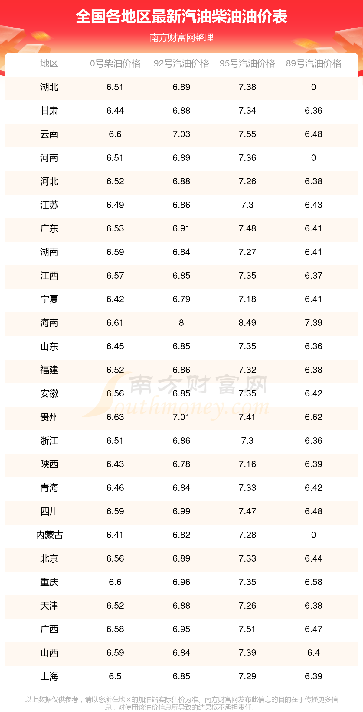 2025年11月29日全國油價調(diào)整及最新汽油價格表