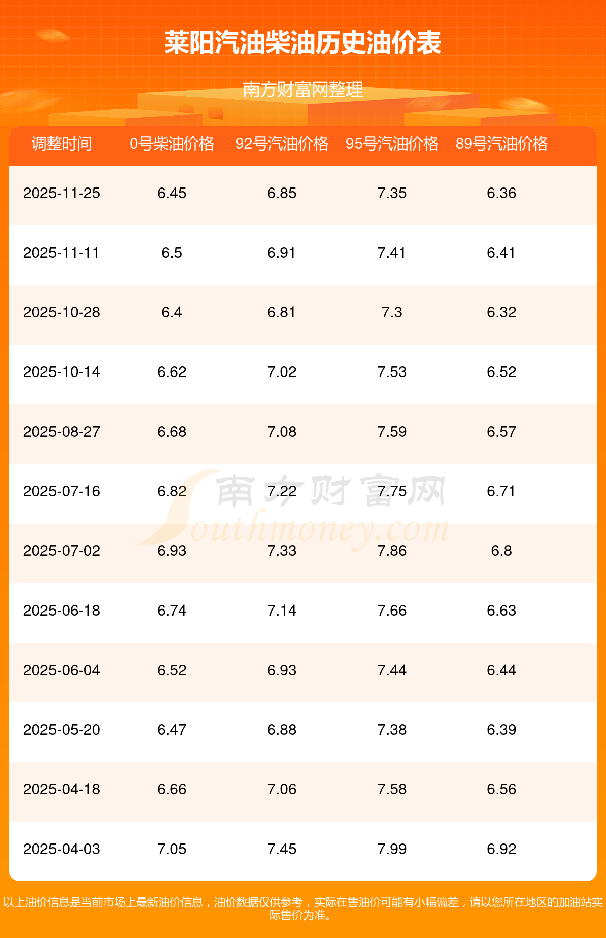 萊陽(yáng)2025年汽油價(jià)格一覽表
