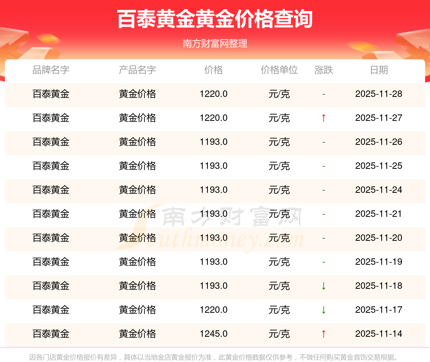 今日百泰黃金黃金價(jià)格是1220.0元/克。
