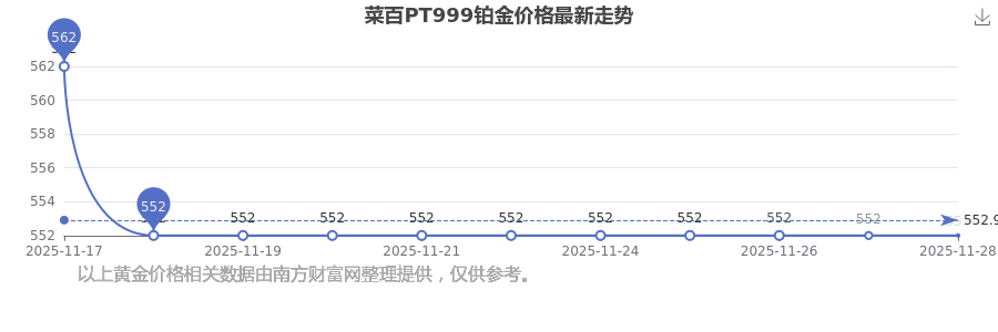 今日菜百 PT999鉑金價(jià)格,最新確定為552.0元/克。
