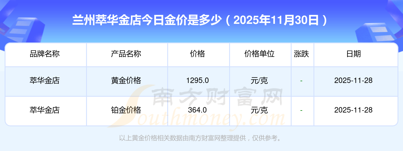 2025年11月30日2025今日金價(jià)查詢表_今日蘭州萃華金店金價(jià)表一覽
