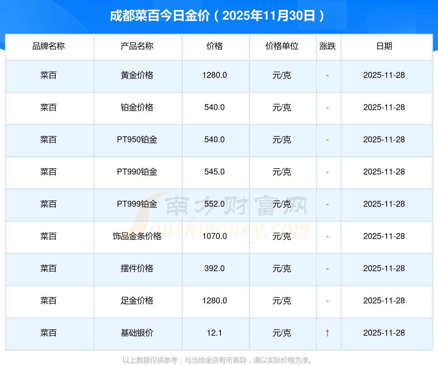 2025年11月30日|成都菜百今日黃金價(jià)格_菜百金價(jià)多少一克