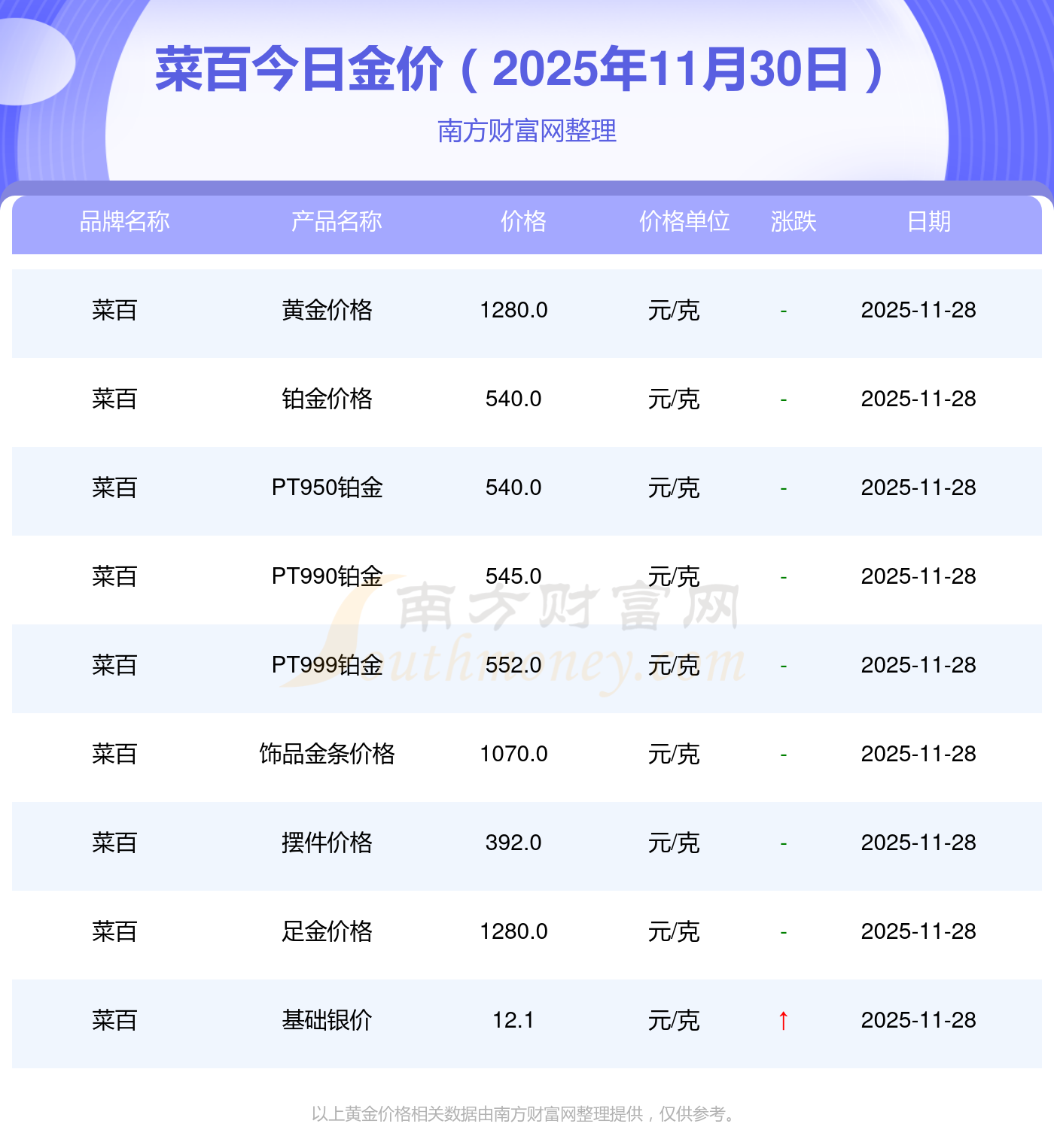 2025年11月30日菜百黃金價(jià)格表_菜百金價(jià)多少錢一克,一起來(lái)看看吧!