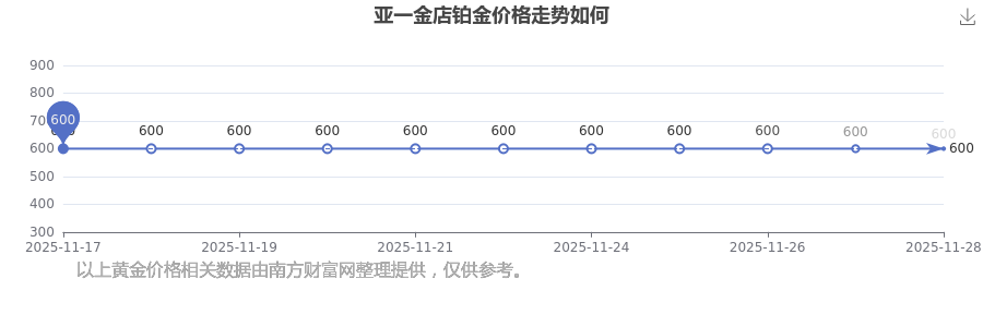 今日亞一金店 鉑金價格的最新定價為600.0元/克。