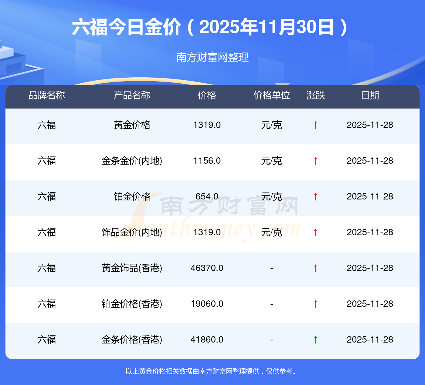 今天是2025年11月30日,星光達(dá)珠寶、星光達(dá)珠寶、寶泉錢幣、金蘭首飾、金蘭首飾、謝瑞麟、謝瑞麟、謝瑞麟、謝瑞麟、謝瑞麟、金銀街等各大金店品牌金條金價(jià)(內(nèi)地)最新價(jià)格如下:星光達(dá)珠寶1321.0元/克、星光達(dá)珠寶600.0元/克、寶泉錢幣12.6元/克、金蘭首飾1321.0元/克、金蘭首飾600.0元/克、謝瑞麟1207.0元/克、謝瑞麟1321.0元/克、謝瑞麟46370.0、謝瑞麟13970.0、謝瑞麟41860.0、金銀街1296.0元/克。