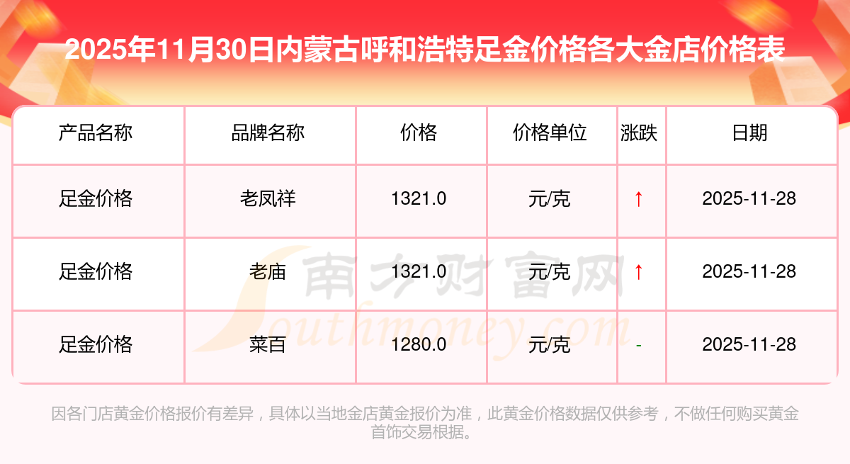 二、2025年11月30日今日內(nèi)蒙古呼和浩特各金店足金價(jià)格實(shí)時(shí)查詢表