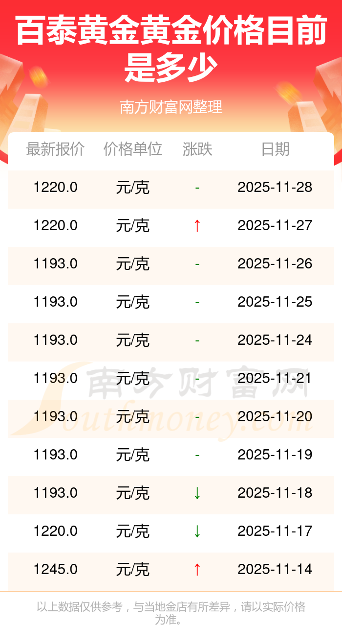 百泰黃金黃金價(jià)格多少錢一克?百泰黃金黃金價(jià)格今日價(jià)格(2025年11月30日)