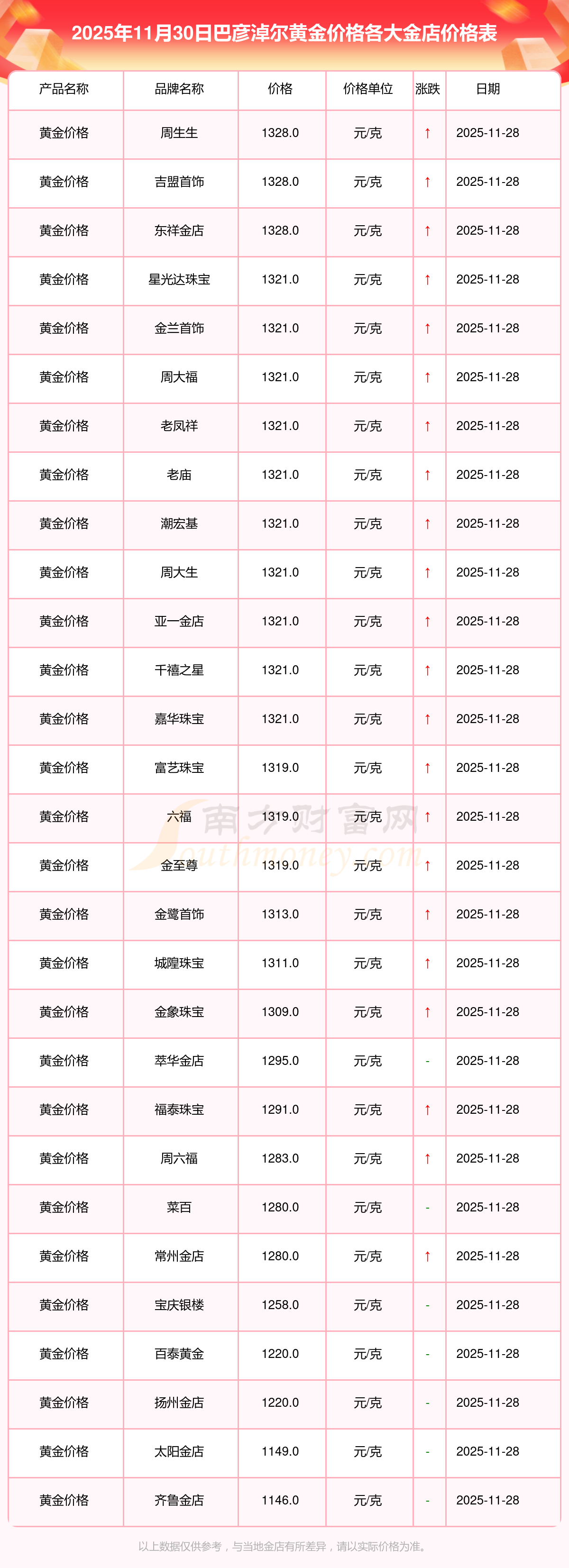 目前,巴彥淖爾黃金價格最高的金店為周生生,報價1328.0元/克。而黃金價格最低的金店是齊魯金店,報價1146.0元/克。今日黃金價格高低差為182元/克。