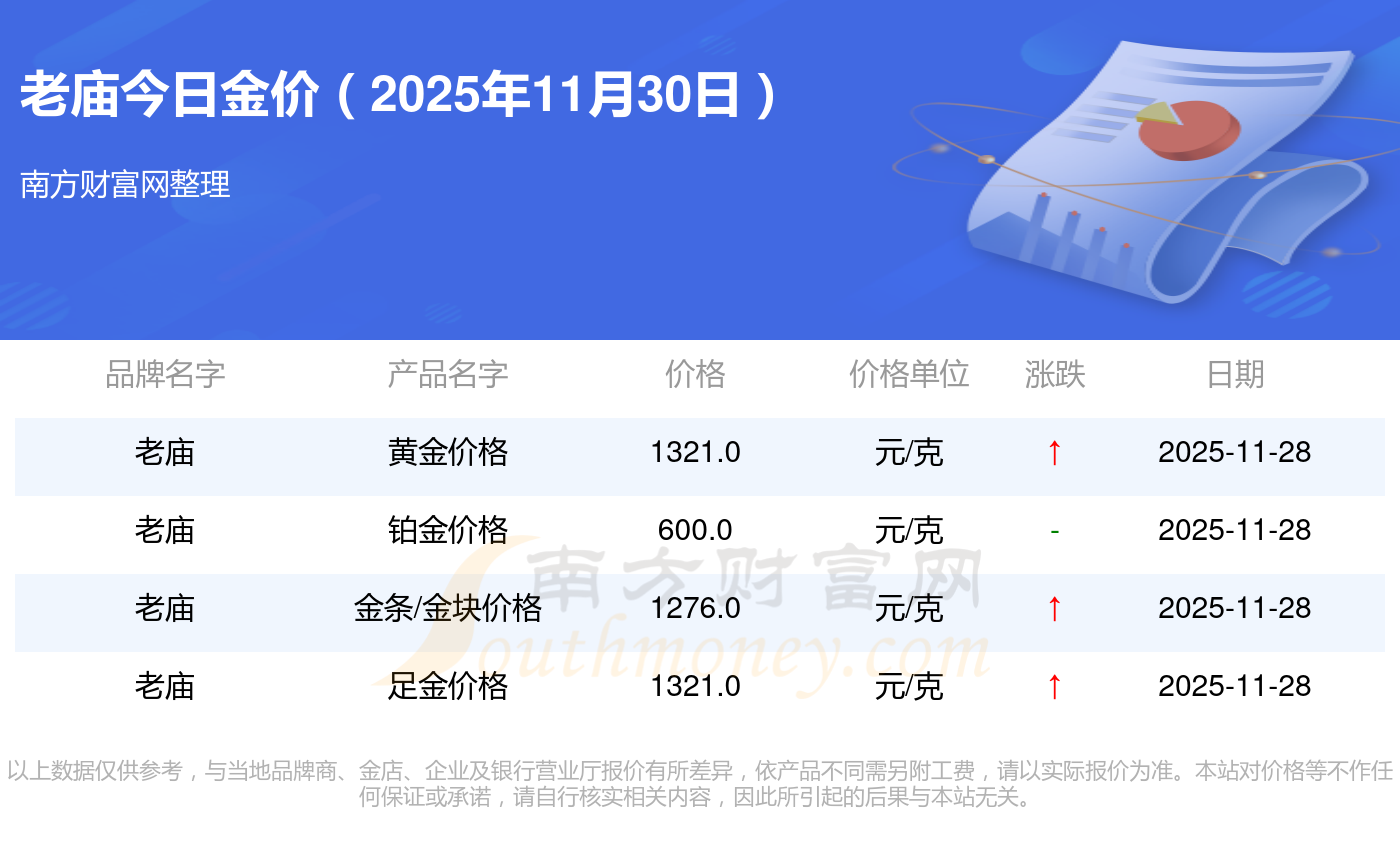 老廟目前金價多少錢一克,老廟黃金價格最新查詢(2025年11月30日)