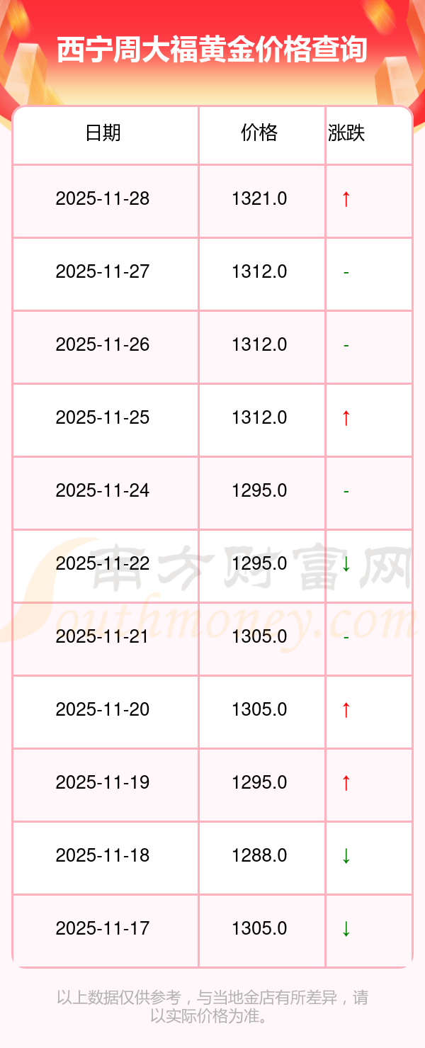 1321.0元/克,這是西寧周大福于 2025年11月30日所定的黃金價(jià)格。
