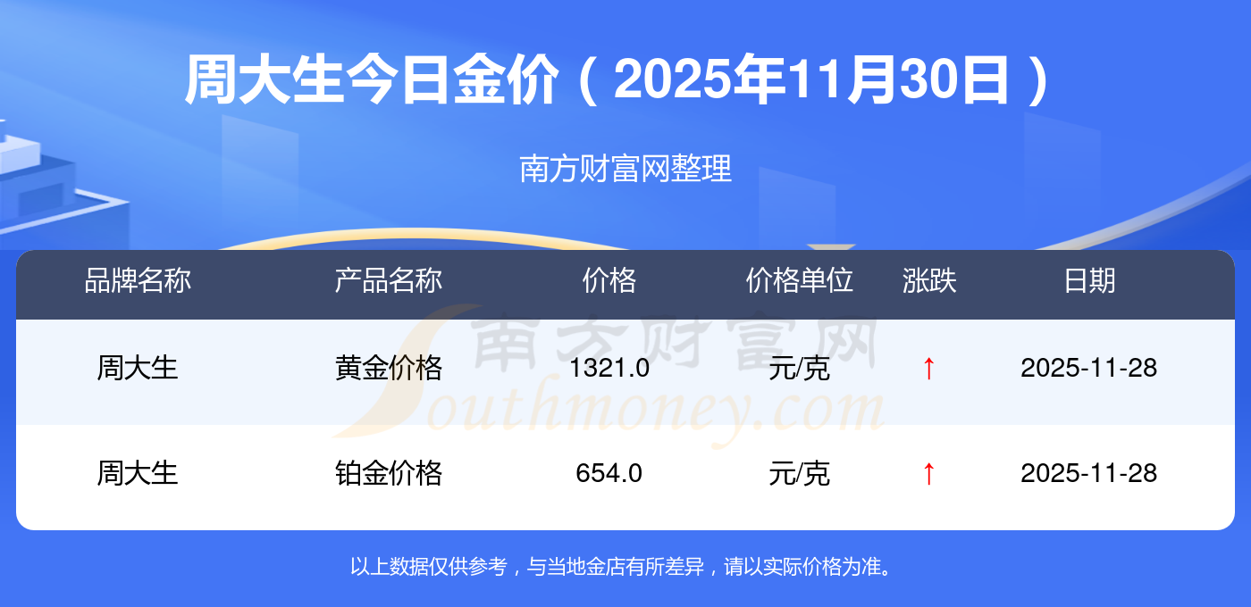 各大金店今日黃金價格查詢,各大金店黃金價格多少錢一克(2025年11月30日)
