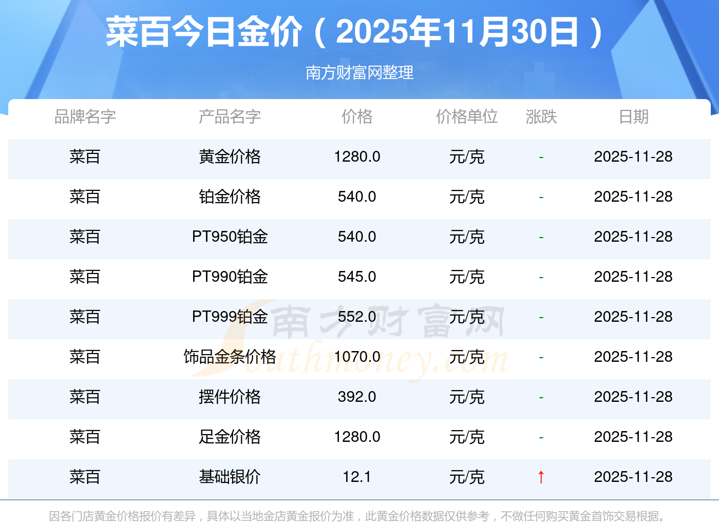 11-30|最新菜百黃金今日價(jià)格多少一克_金飾單個(gè)重量單位(克)對(duì)應(yīng)的價(jià)格是什么
