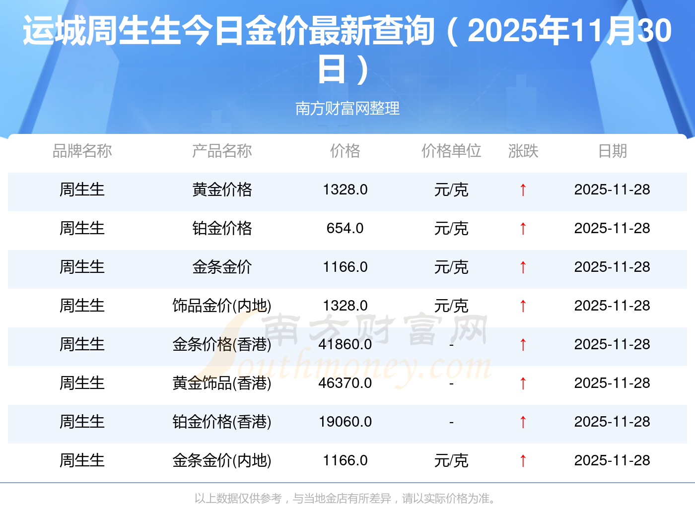 運城周生生金價今日黃金價格表公布_黃金TD溢價是什么意思?2025年11月30日