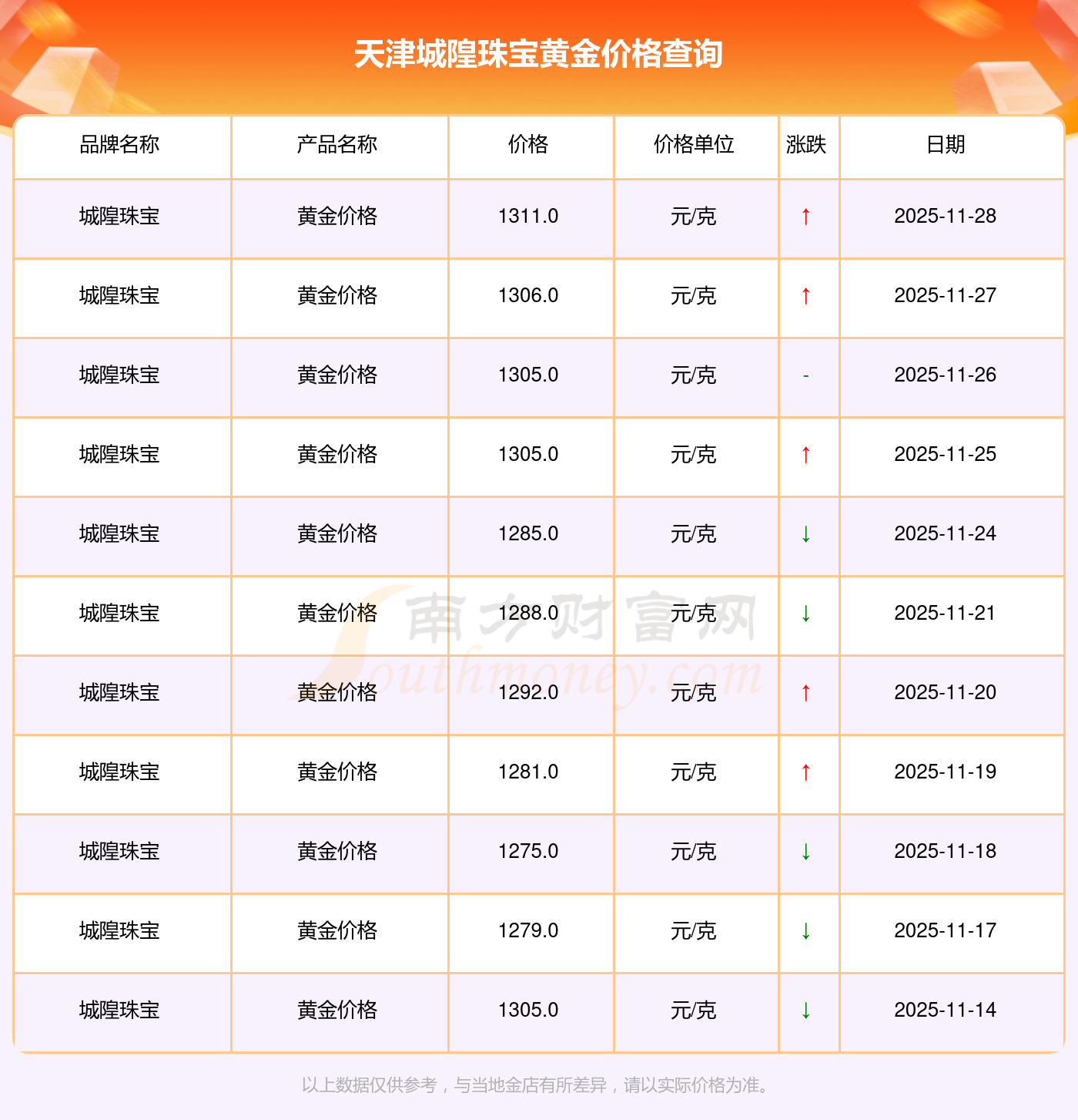 2025年11月30日天津城隍珠寶今日黃金價(jià)格是多少?黃金價(jià)格最新價(jià)格來了