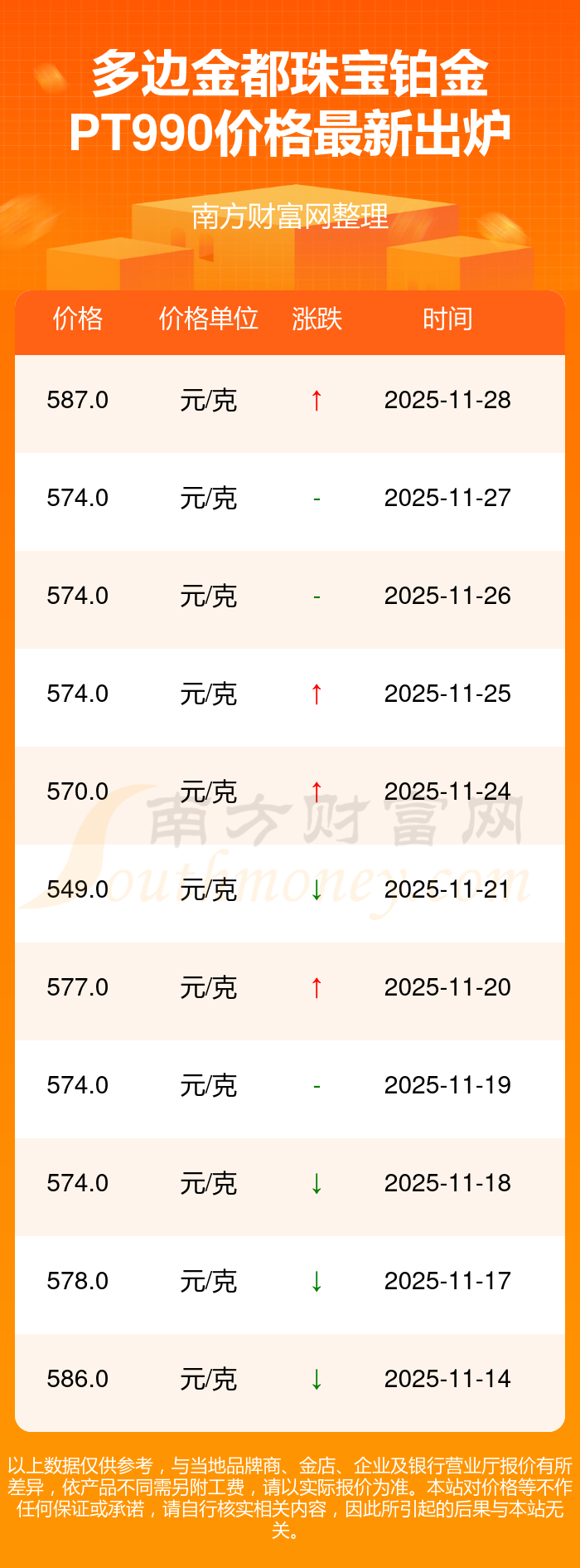 2025年11月30日多邊金都珠寶今日鉑金PT990多少錢一克?什么在影響鉑金價格的走勢?